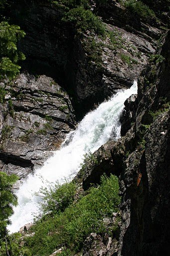 This drop is basically just a huge straight slide with several rooster tails and flakes to deal with. Wary of the right side where a piton had broken a paddle and helmet the day before, we took a few minutes talking about where we wanted to be setting up for this cascade. I went first, entered center with slight left angle and hit the first rooster tail perfectly. After a moment of weightlessness, I skidded down the second half of the slide and sailed off a kicker into the pool at the bottom. Ben and Xavier followed with similar lines and we all dropped the last waterfall, a 5-foot vertical tongue onto a 20 foot auto-boof flake, stoked but relieved to be at the bottom unscathed. Elated, we paddled out to the lake where a car was waiting, picked up Nick’s boat and went to meet him in Glenwood.